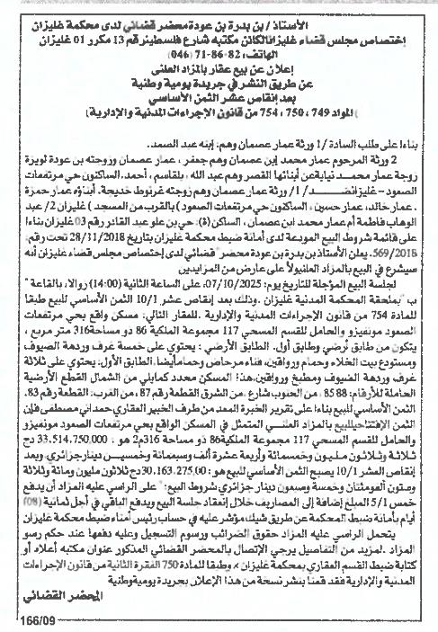 Il sera procédé à la vente au plus offrant et dernier enchérisseur le : 02/10/2025