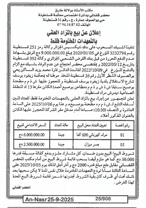 Il sera procédé à la vente au plus offrant et dernier enchérisseur le :