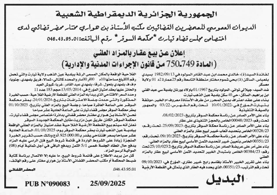 Il sera procédé à la vente au plus offrant et dernier enchérisseur le :