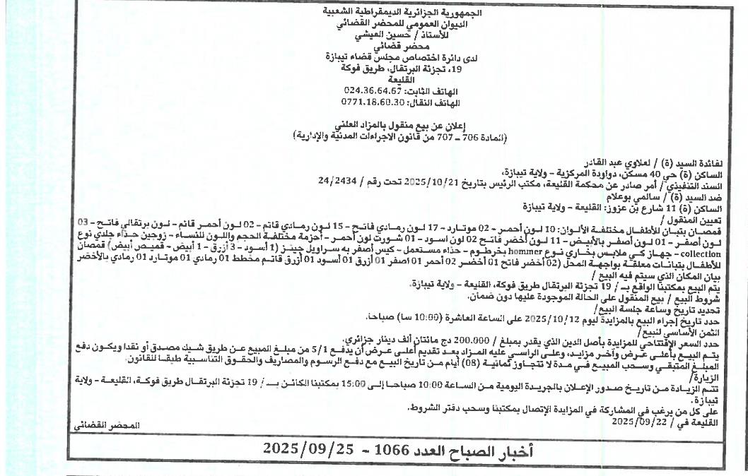 Il sera procédé à la vente au plus offrant et dernier enchérisseur le :