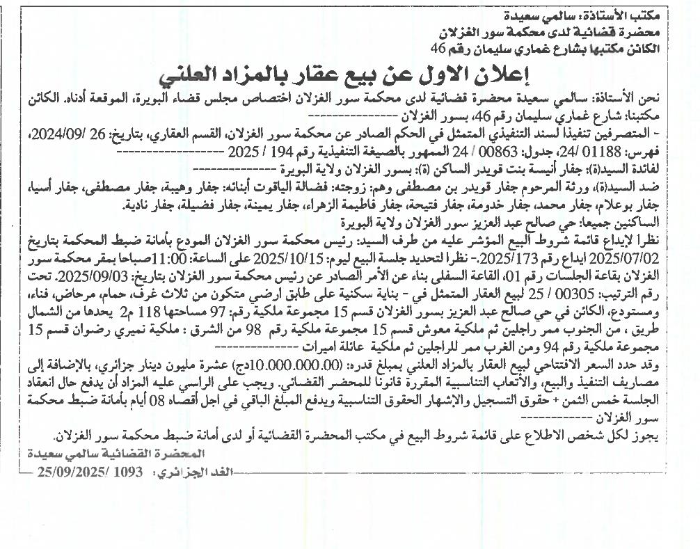 Il sera procédé à la vente au plus offrant et dernier enchérisseur le :