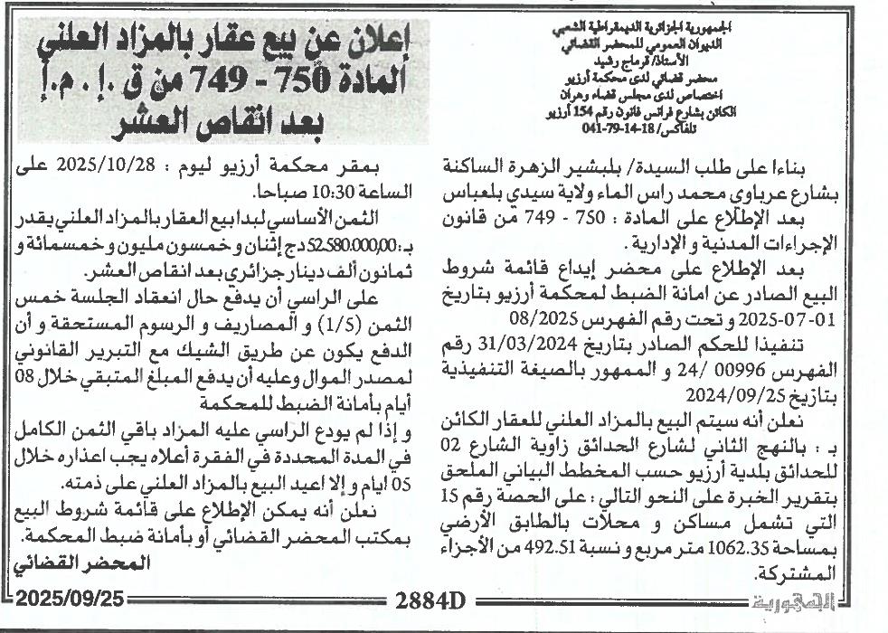 Il sera procédé à la vente au plus offrant et dernier enchérisseur le :