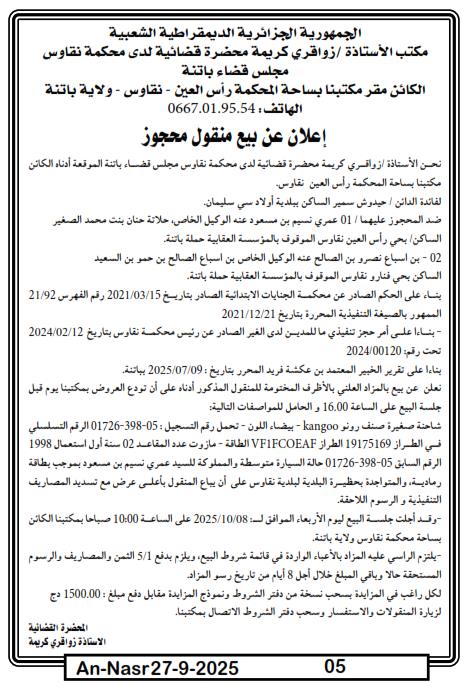 Il sera procédé à la vente au plus offrant et dernier enchérisseur le :