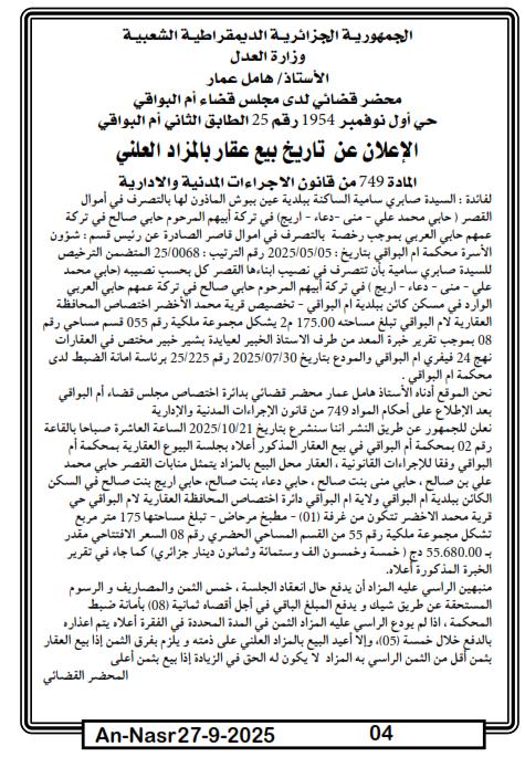 Il sera procédé à la vente au plus offrant et dernier enchérisseur le :