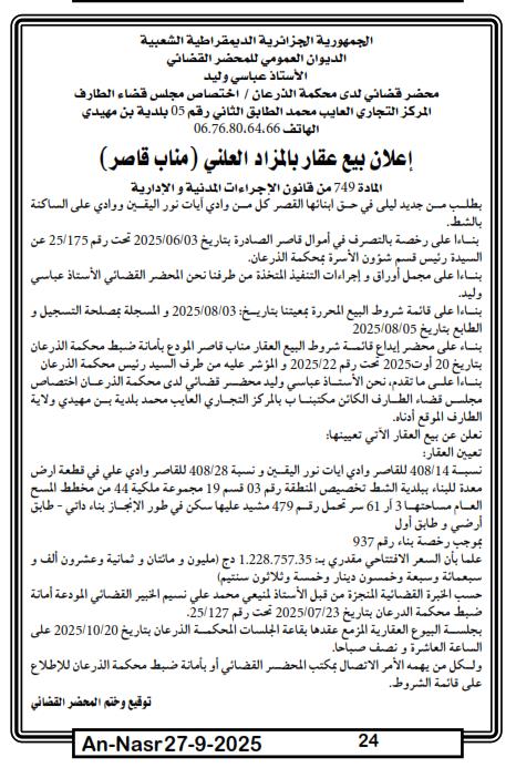 | Paru dans le journal : النصر | |