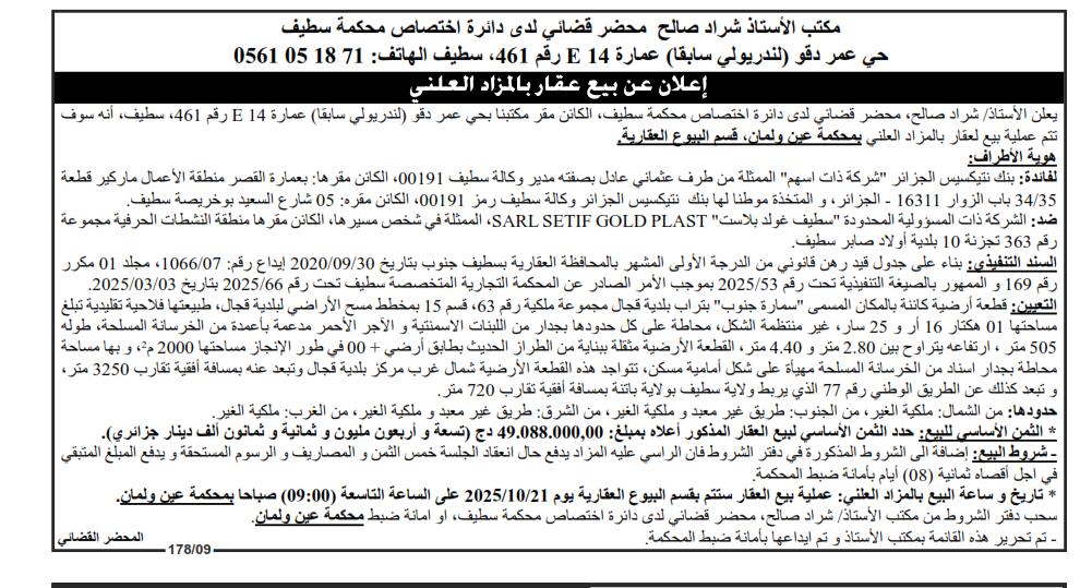 Il sera procédé à la vente au plus offrant et dernier enchérisseur le :