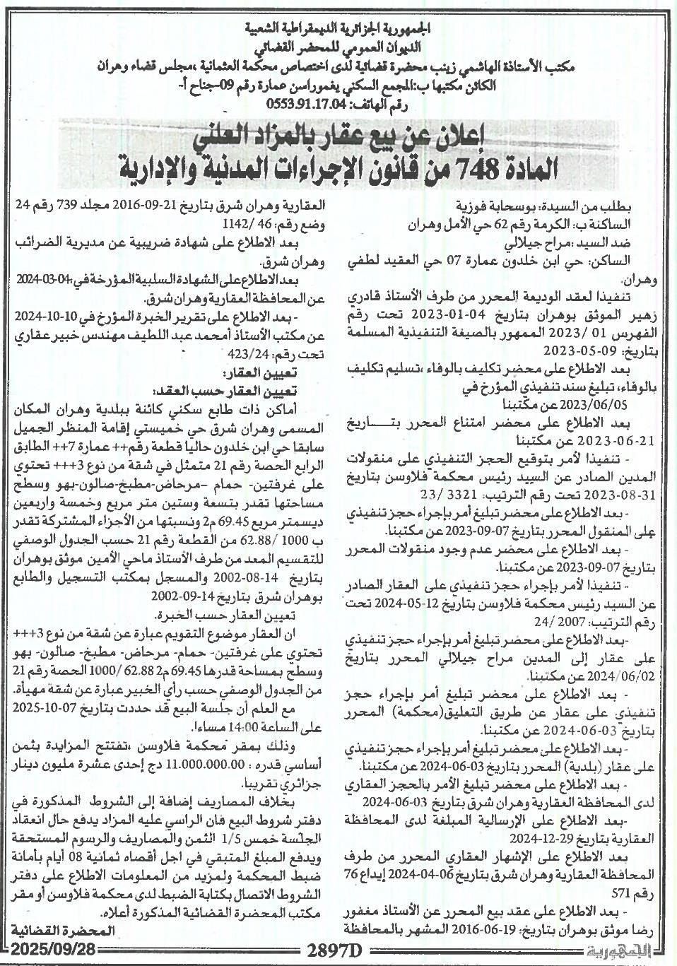 Il sera procédé à la vente au plus offrant et dernier enchérisseur le :