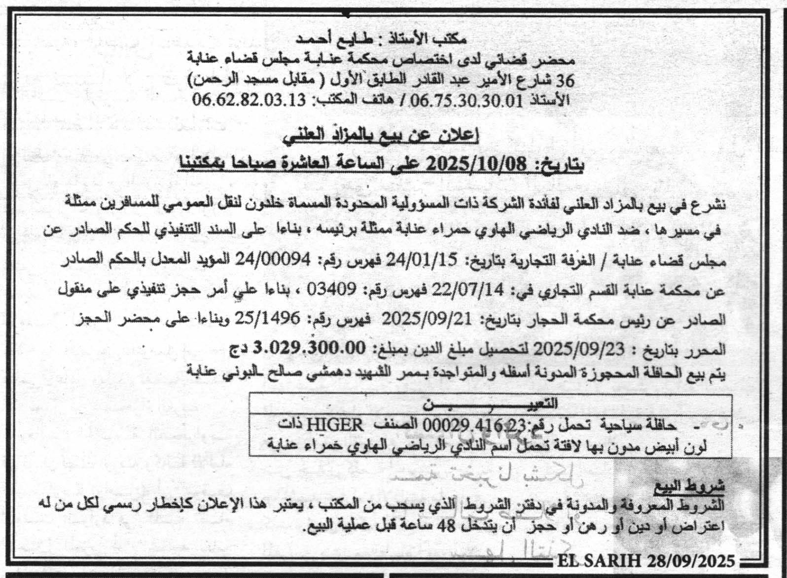 Il sera procédé à la vente au plus offrant et dernier enchérisseur le :