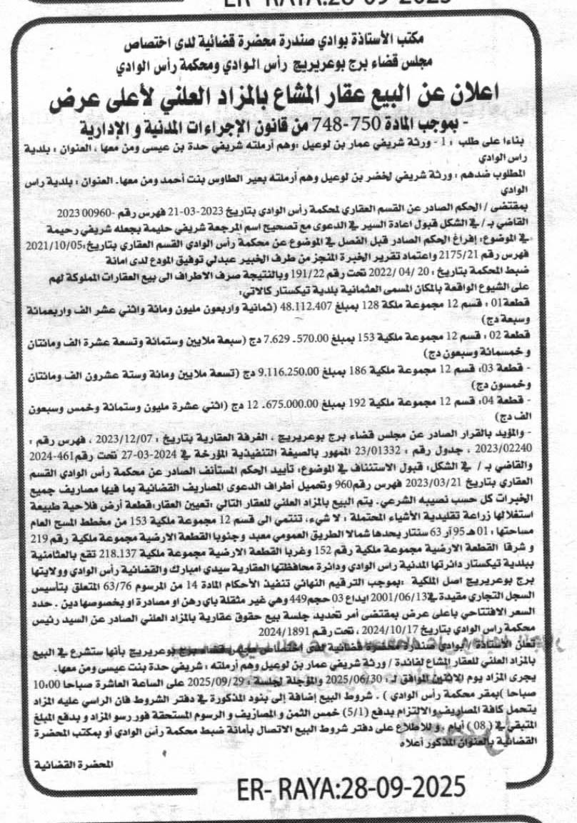 Il sera procédé à la vente au plus offrant et dernier enchérisseur le : 05/10/2025';