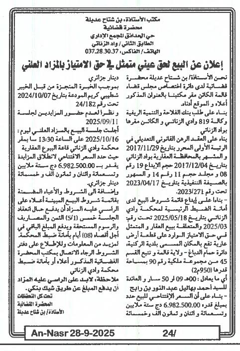 Il sera procédé à la vente au plus offrant et dernier enchérisseur le :