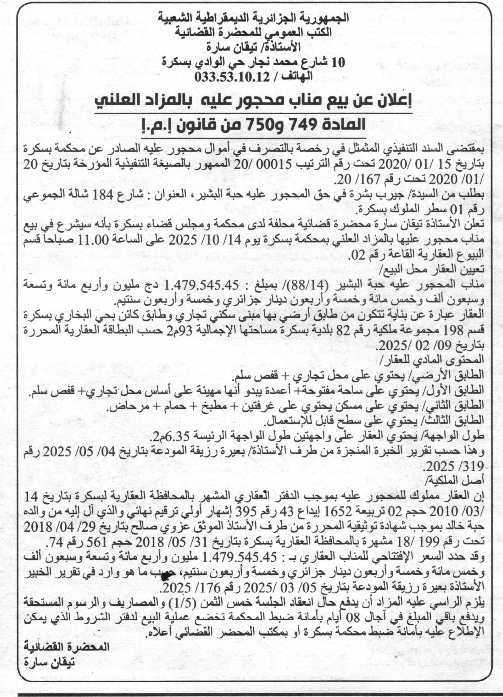| Wilaya : Biskra | |