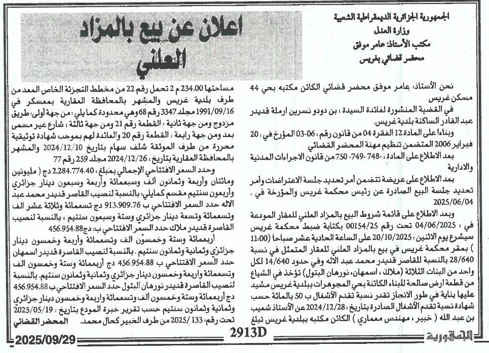 Il sera procédé à la vente au plus offrant et dernier enchérisseur le :