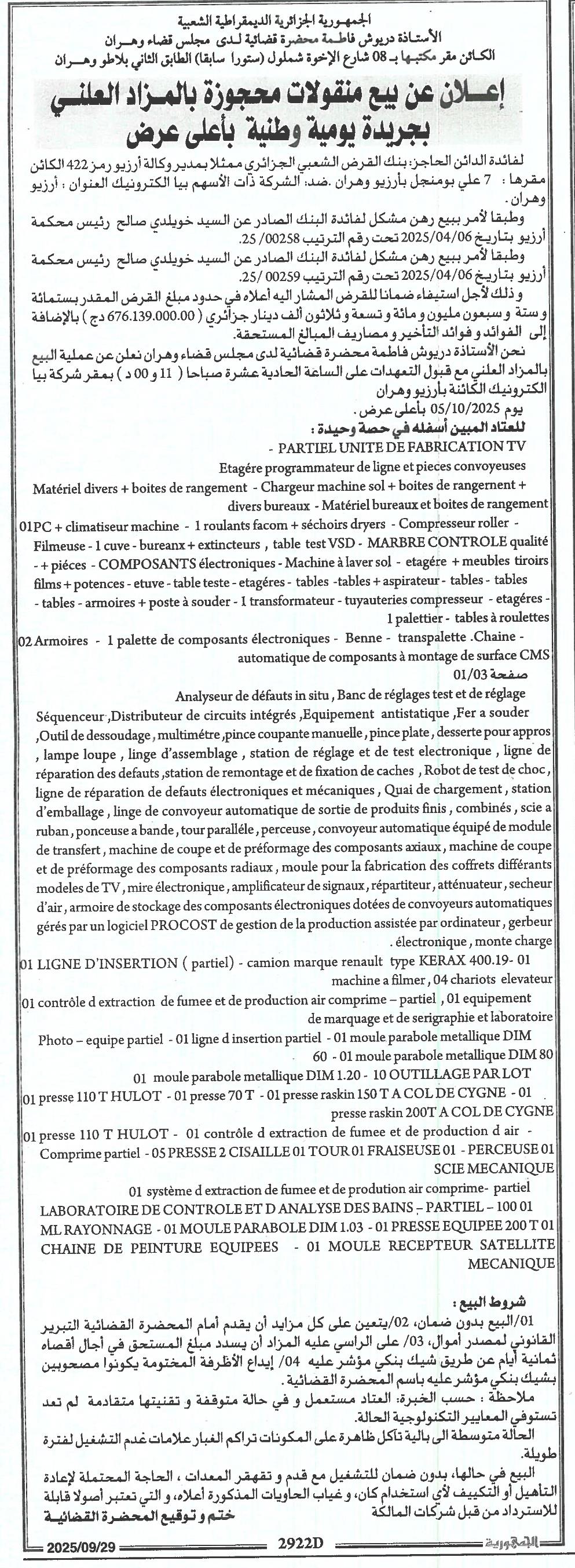 Il sera procédé à la vente au plus offrant et dernier enchérisseur le :