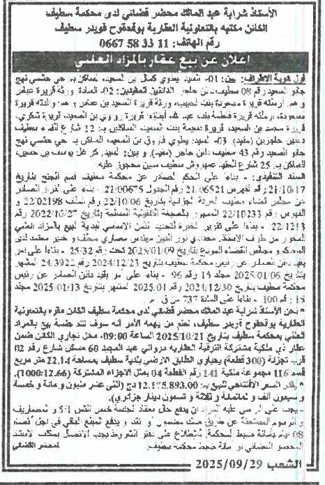 Il sera procédé à la vente au plus offrant et dernier enchérisseur le :