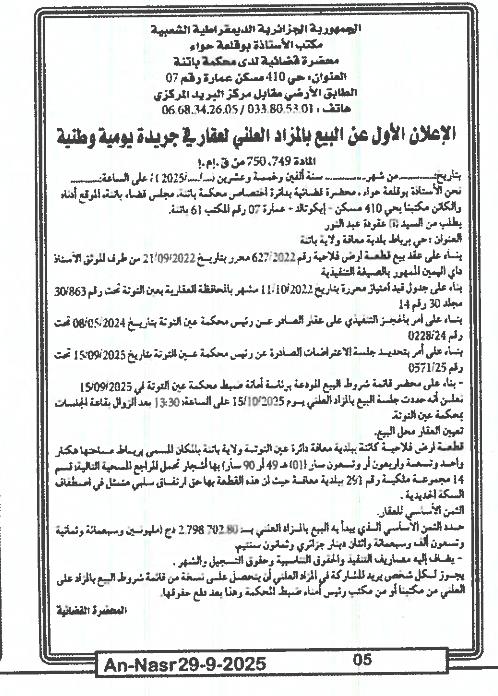 Il sera procédé à la vente au plus offrant et dernier enchérisseur le :