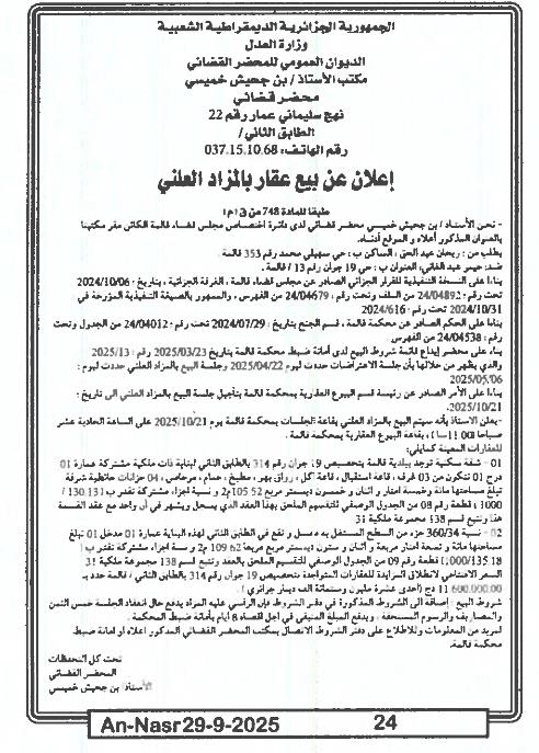 Il sera procédé à la vente au plus offrant et dernier enchérisseur le :