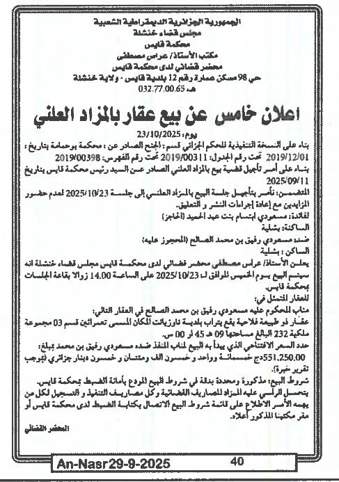 | Paru dans le journal : النصر | |