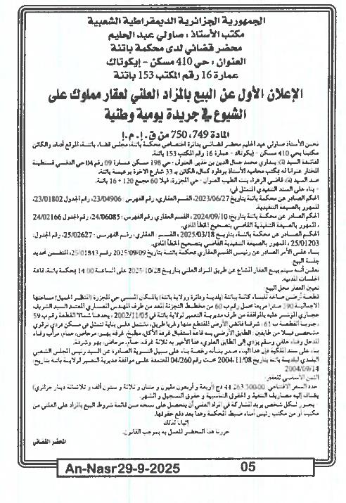Il sera procédé à la vente au plus offrant et dernier enchérisseur le :