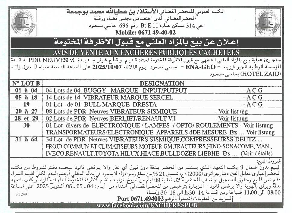 Il sera procédé à la vente au plus offrant et dernier enchérisseur le :