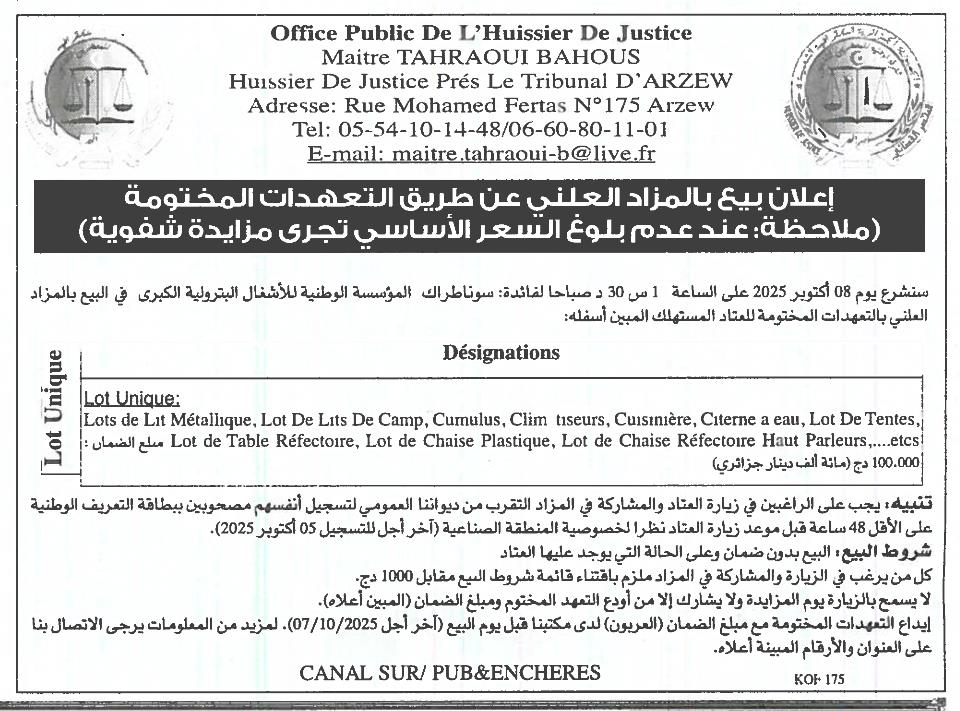 Il sera procédé à la vente au plus offrant et dernier enchérisseur le :