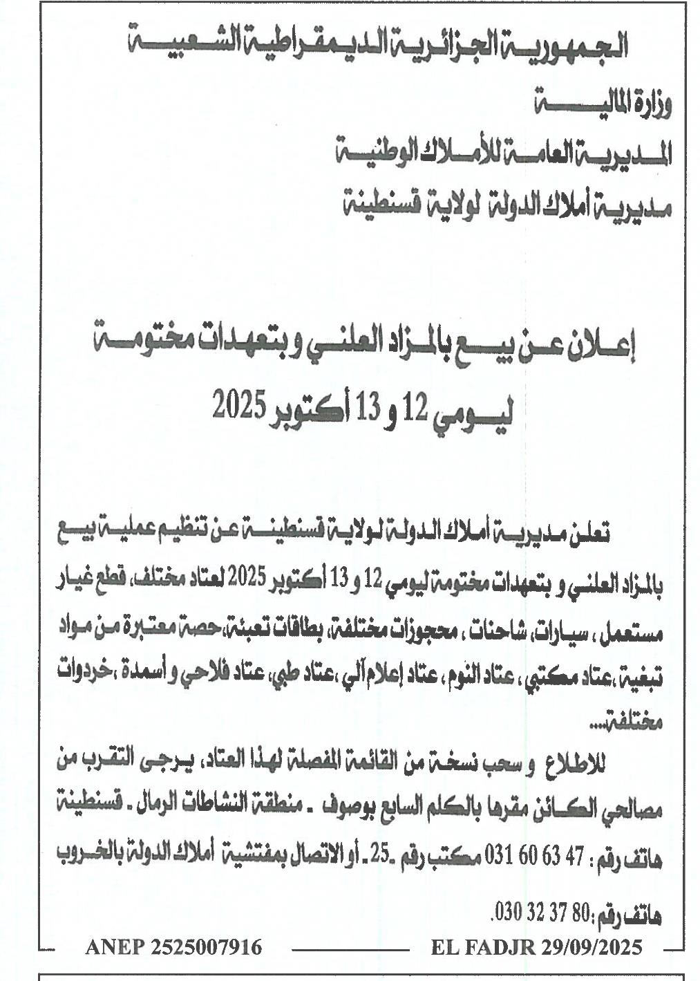 Il sera procédé à la vente au plus offrant et dernier enchérisseur le :