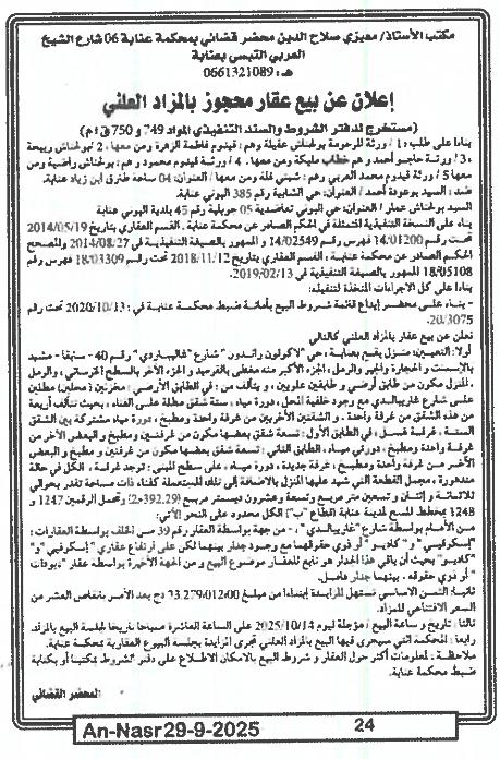 Il sera procédé à la vente au plus offrant et dernier enchérisseur le :