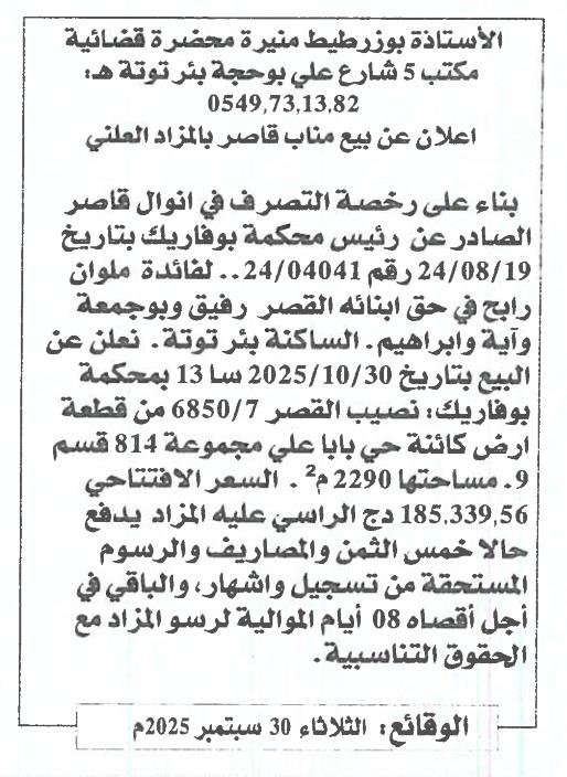 Il sera procédé à la vente au plus offrant et dernier enchérisseur le :