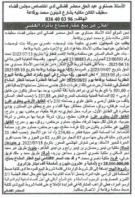 Il sera procédé à la vente au plus offrant et dernier enchérisseur le :
