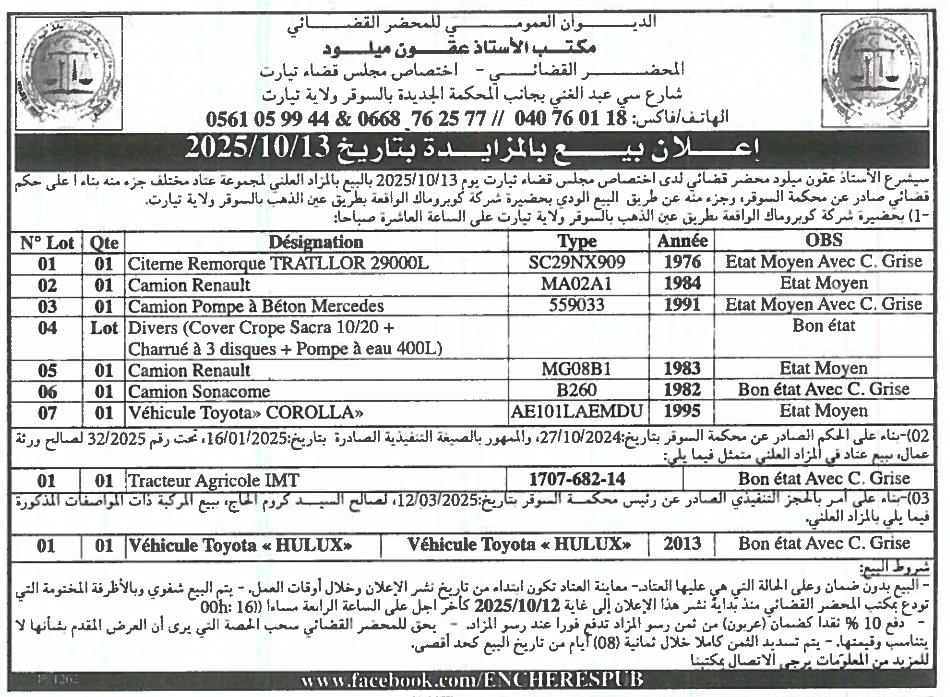 Il sera procédé à la vente au plus offrant et dernier enchérisseur le :