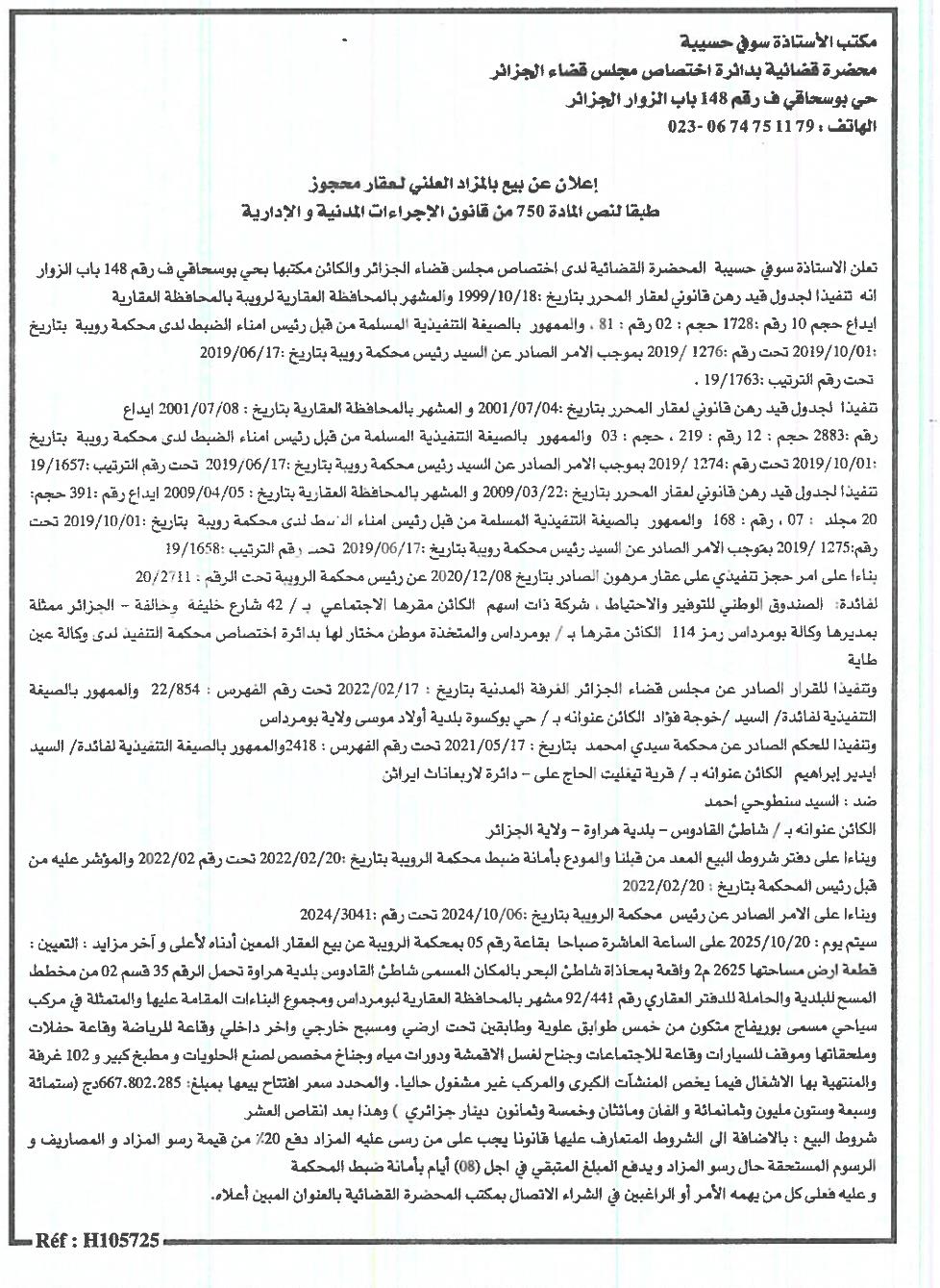 Il sera procédé à la vente au plus offrant et dernier enchérisseur le :