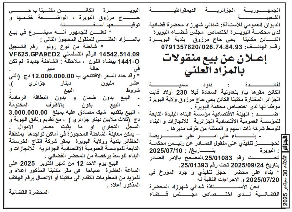 Il sera procédé à la vente au plus offrant et dernier enchérisseur le :