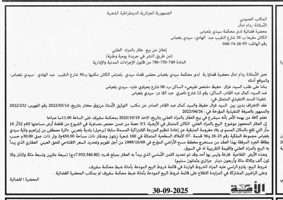 Il sera procédé à la vente au plus offrant et dernier enchérisseur le :