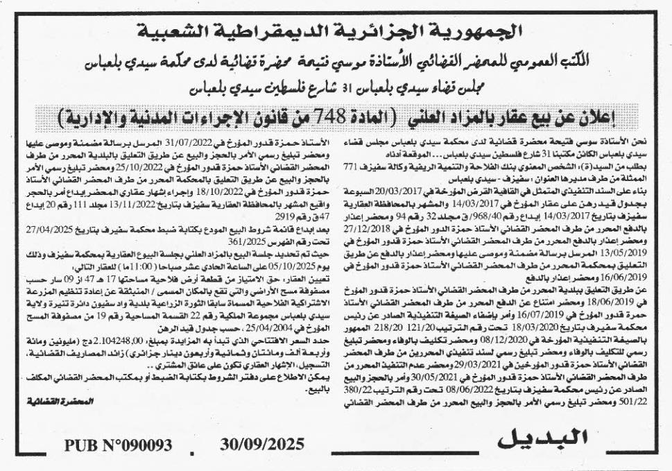 Il sera procédé à la vente au plus offrant et dernier enchérisseur le :