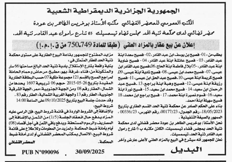 Il sera procédé à la vente au plus offrant et dernier enchérisseur le :