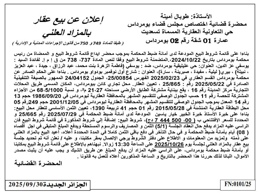 Il sera procédé à la vente au plus offrant et dernier enchérisseur le :