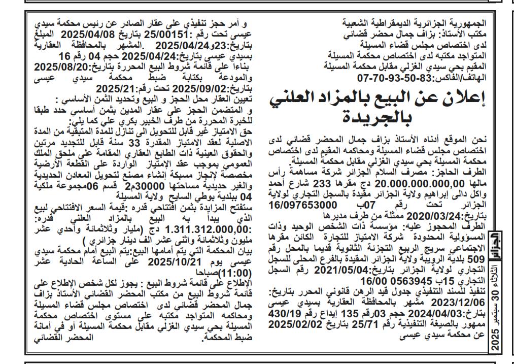 Il sera procédé à la vente au plus offrant et dernier enchérisseur le :