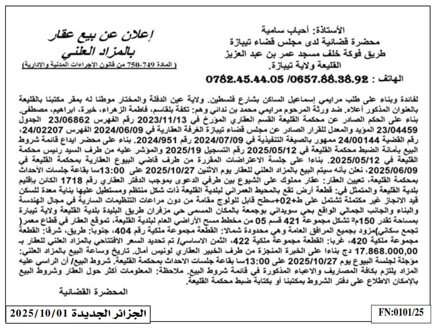 | Paru dans le journal : الجزائر الجديدة | |