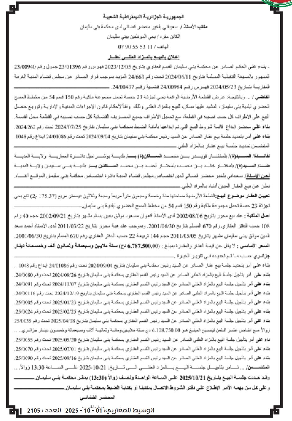 Il sera procédé à la vente au plus offrant et dernier enchérisseur le :