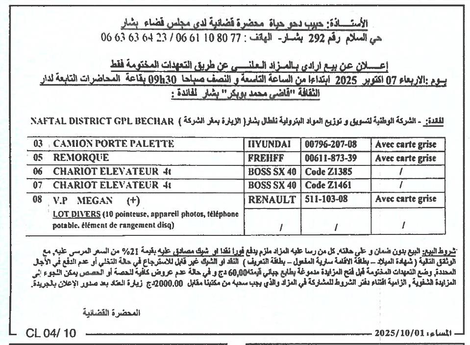 Il sera procédé à la vente au plus offrant et dernier enchérisseur le :