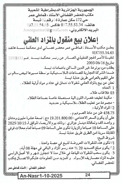 Il sera procédé à la vente au plus offrant et dernier enchérisseur le :