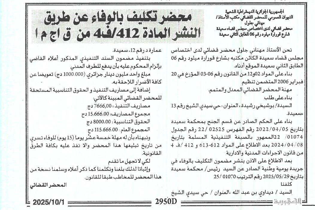 Il sera procédé à la vente au plus offrant et dernier enchérisseur le :