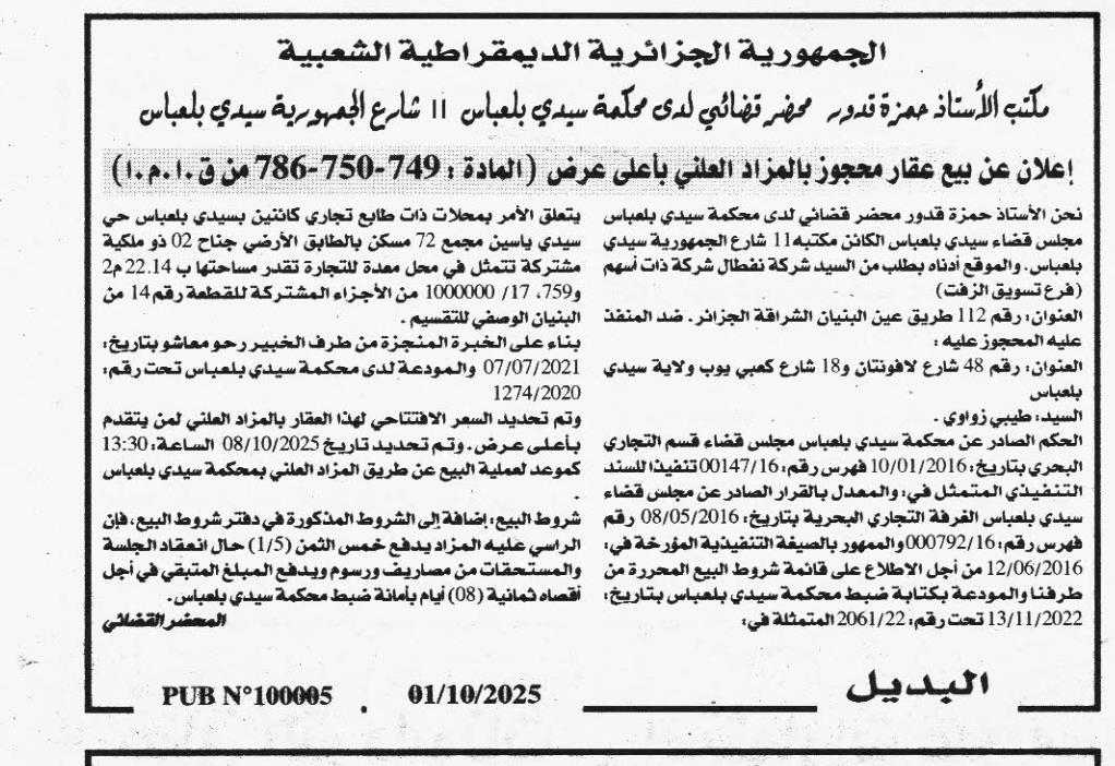 Il sera procédé à la vente au plus offrant et dernier enchérisseur le :