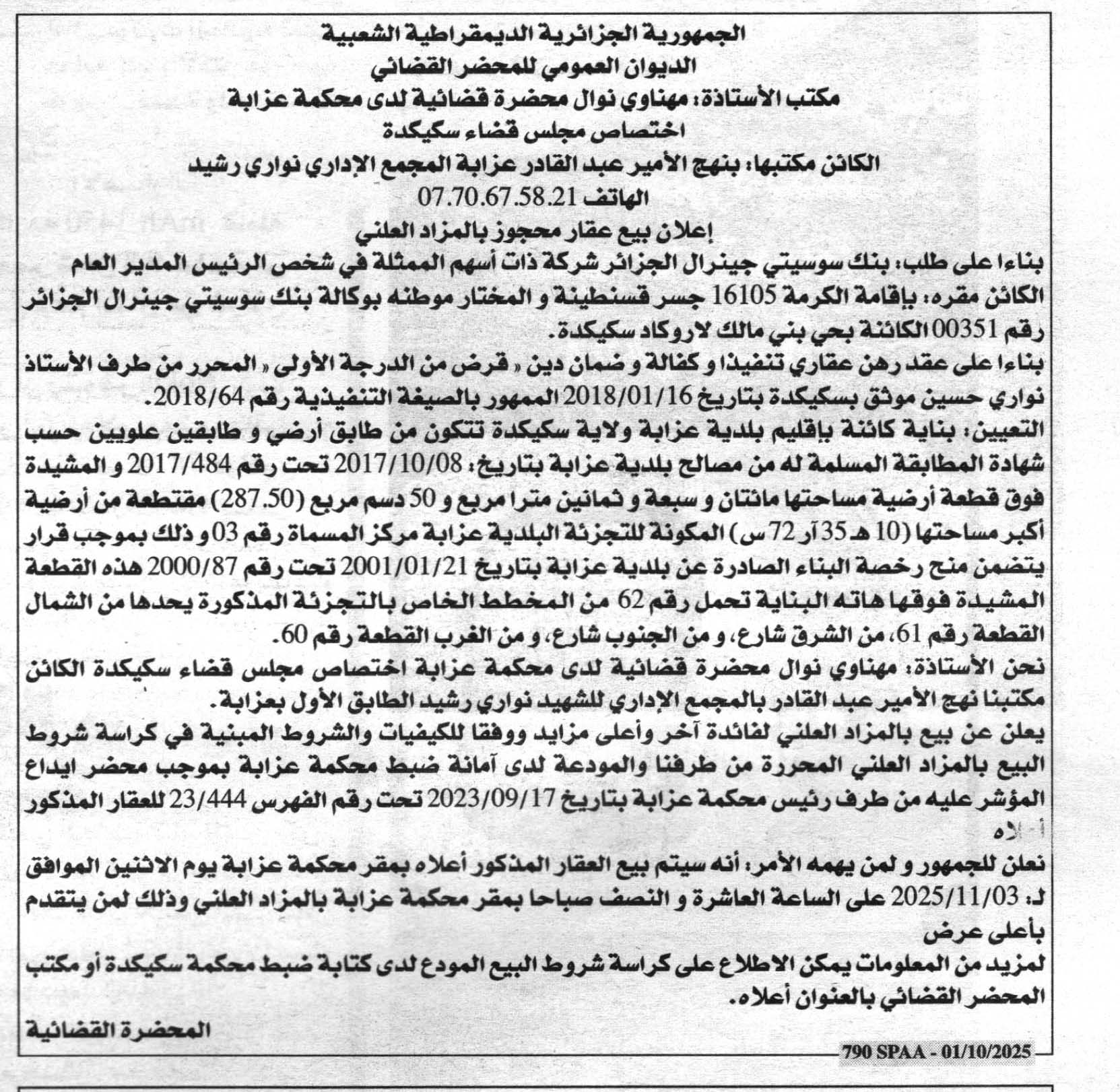 Il sera procédé à la vente au plus offrant et dernier enchérisseur le :
