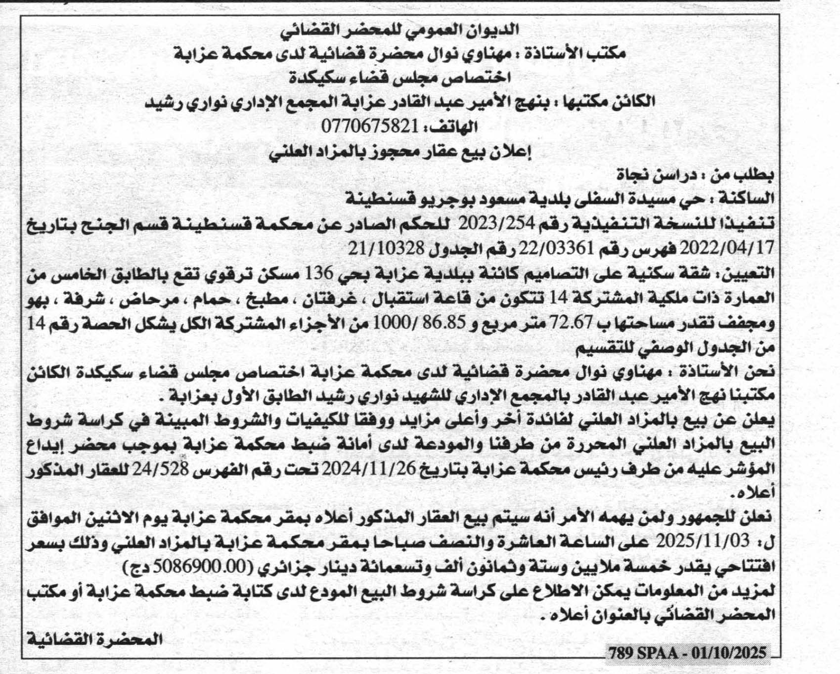 Il sera procédé à la vente au plus offrant et dernier enchérisseur le :