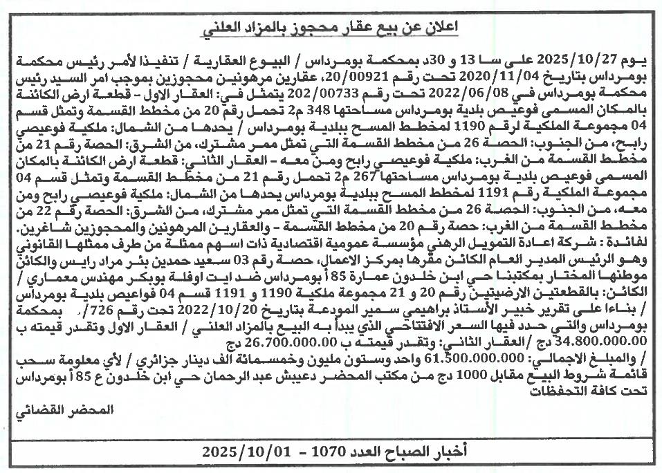 Il sera procédé à la vente au plus offrant et dernier enchérisseur le :