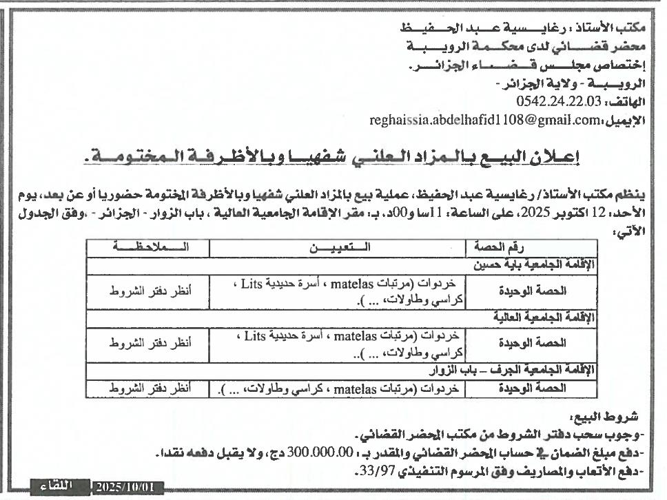 Il sera procédé à la vente au plus offrant et dernier enchérisseur le :