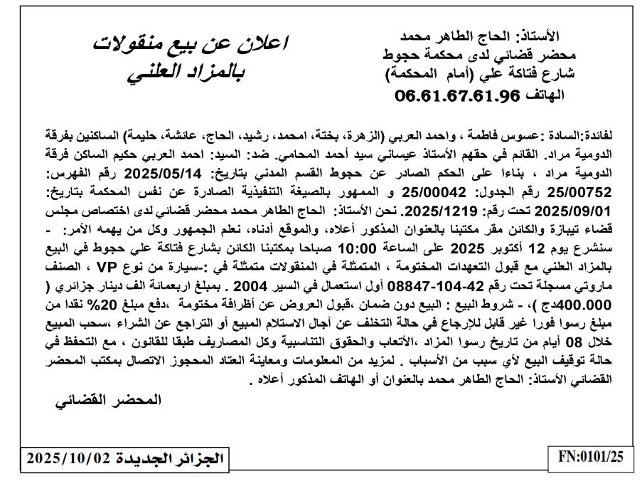 | Paru dans le journal : الجزائر الجديدة | |
