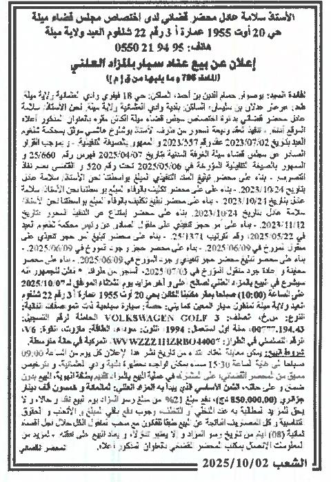 Il sera procédé à la vente au plus offrant et dernier enchérisseur le :