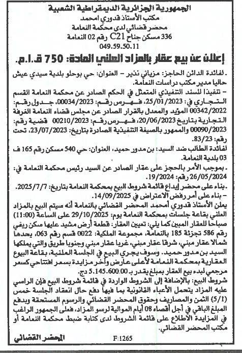 | Objet: Vente d'un immobiliers | |
