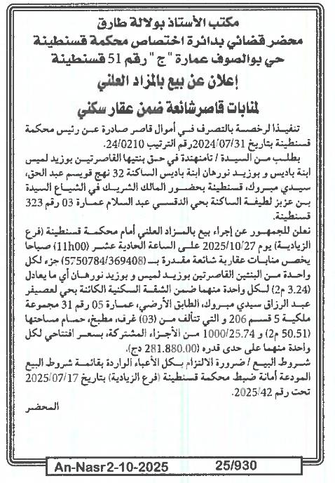 Il sera procédé à la vente au plus offrant et dernier enchérisseur le :